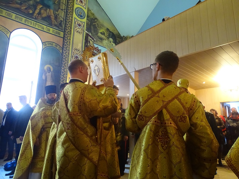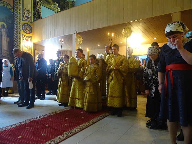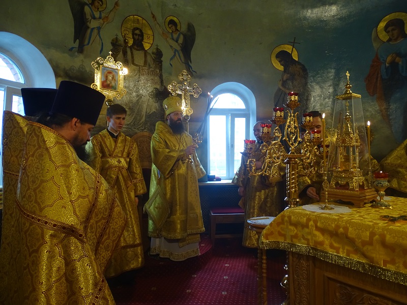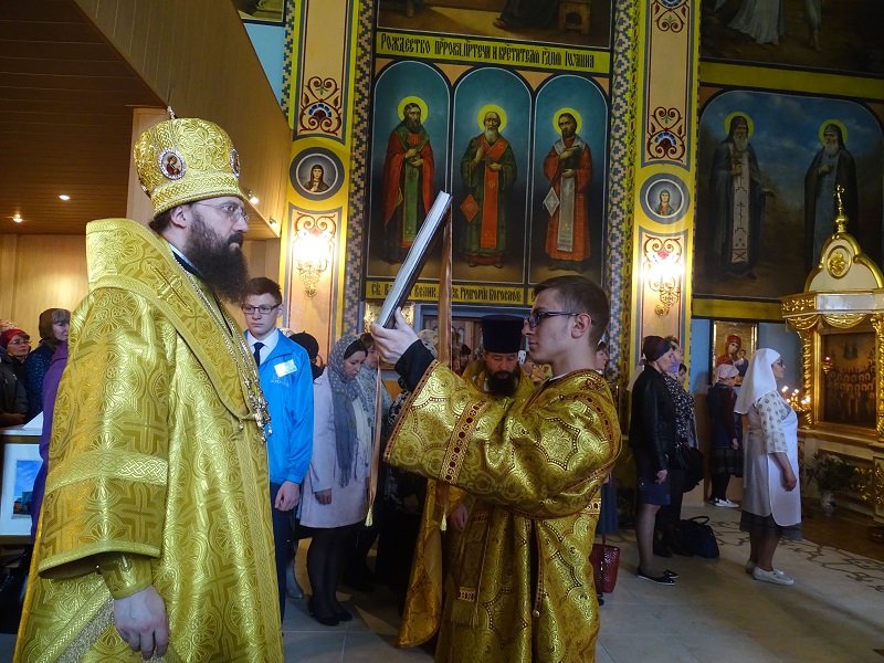 Его Преосвященству сослужили: секретарь Норильской епархии иеромонах Герман (Мельников); благочинный Норильского округа протоиерей Владимир Иванов; штатный клир собора.