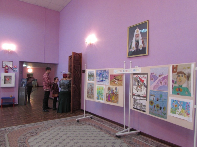 В стенах актового зала были размещены две выставки. Для персональной выставки фотохудожника Александра Харитонова были отобраны фотографии мест, связанных с историей репрессий на Таймыре. На другой были представлены работы школьников, подготовленные для ежегодной выставки «Красота Божьего мира», проводимой Московской Патриархией.