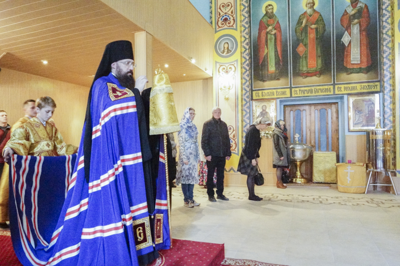 По окончании Литургии Епископ Агафангел соверших славление перед иконой праздника.
