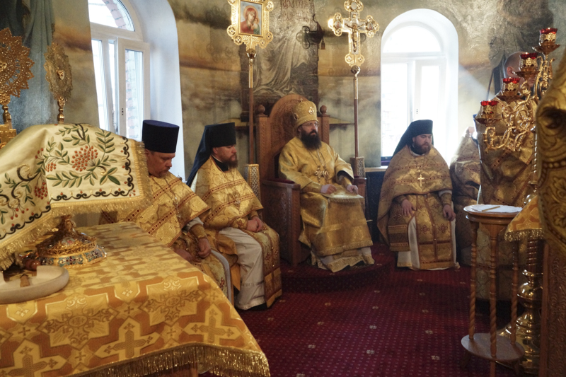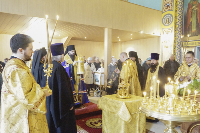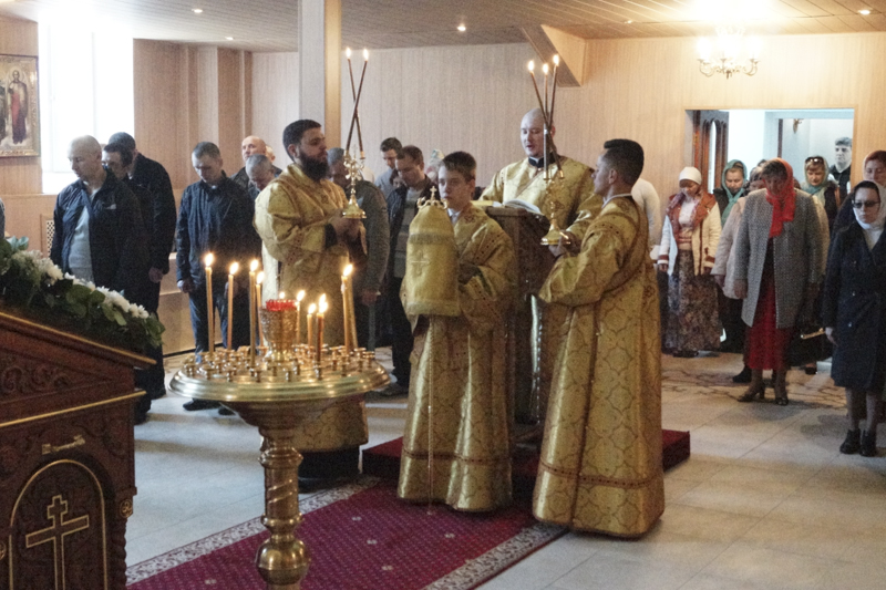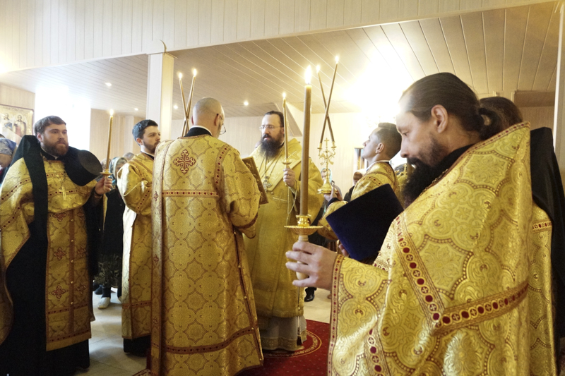 Его Преосвященству сослужили: секретарь Норильской епархии иеромонах Герман (Мельников); настоятель Свято-Троицкого Туруханского монастыря игумен Софроний (Семенов); благочинный Норильского округа протоиерей Владимир Иванов; соборное духовенство.