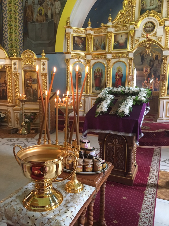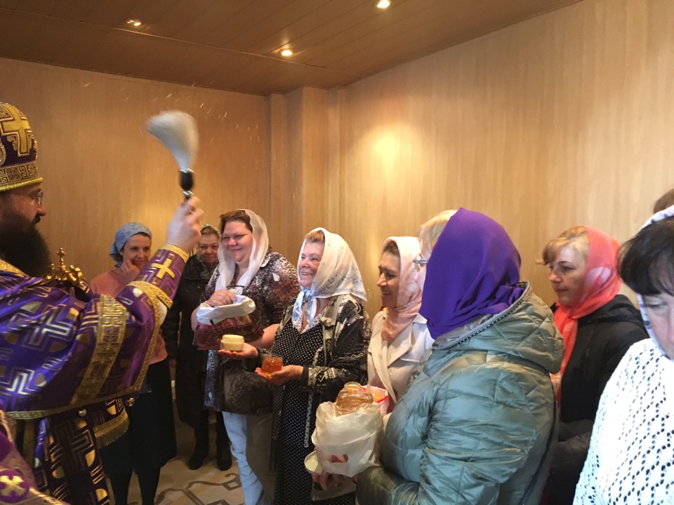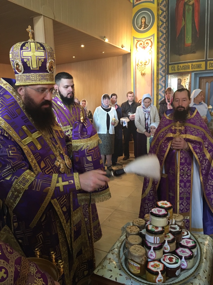 После Литургии, Архипастырь совершил водосвятный молебен и освятил новый урожай меда.