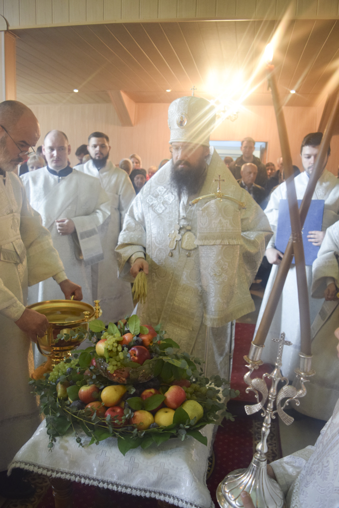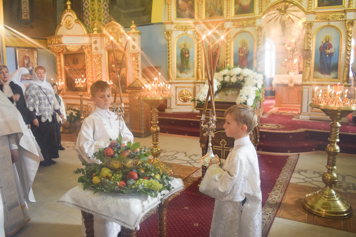 После причастия Архипастырь освятил начатки овощей и фруктов и произнес проповедь.