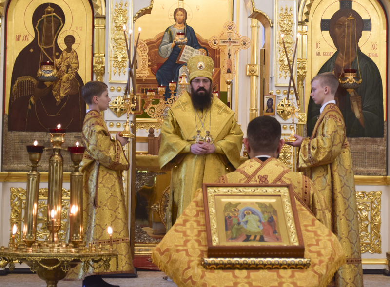 Его Преосвященству сослужили: благочинный Норильского округа протоиерей Владимир Иванов; соборное духовенство.