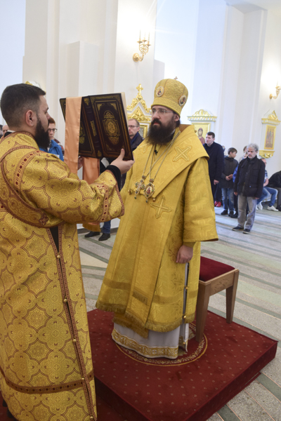 На кануне Архипастырь в сослужении духовенства совершил Всенощное бдение.