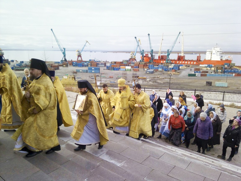 16 сентября 2017 года, в день празднования 350-летия города Дудинки,Преосвященнейший Агафангел, епископ Норильский и Туруханский, совершил Божественную литургию в Свято-Введенском храме города Дудинки,