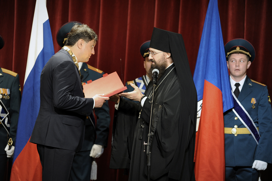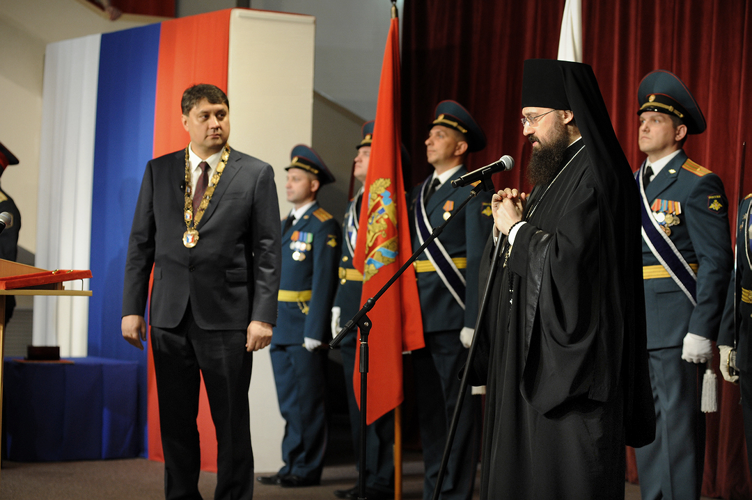 К новоизбранному главе Норильска обратился епископ Норильский и Туруханский Агафангел: "Вашими предшественниками было сделано многое. Я желаю вам сохранить и приумножить лучшее. Пусть дела ваши будут благословенны и на всем пути сопутствует Божия помощь". Владыка вручил Ринату Вячеславовичу икону святого равноапостольного великого князя Владимира.