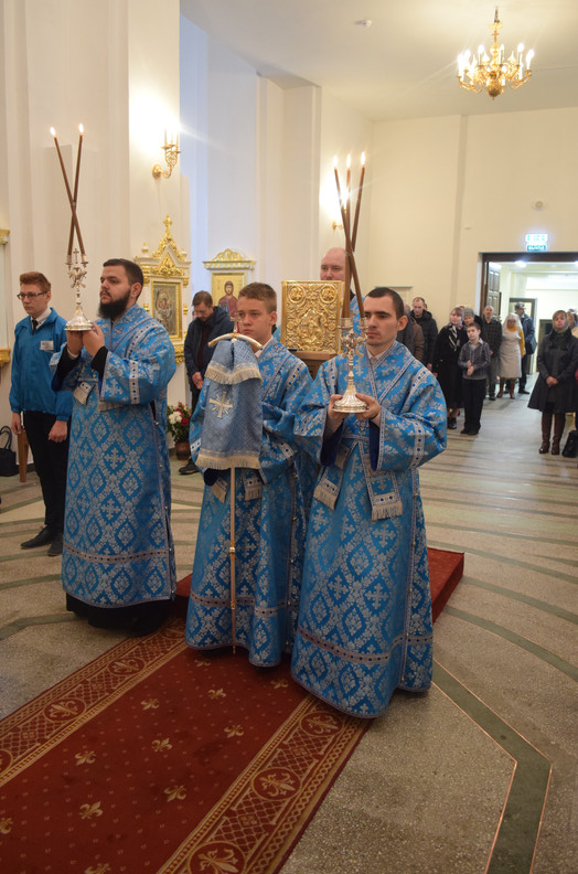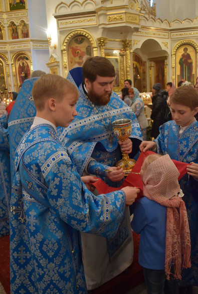 Его Преосвященству сослужили: секретарь Норильской епархии иеромонах Герман (Мельников); настоятель храма в честь святителя Николая, архиепископа Мир Ликийских города Игарка протоиерей Александр Дмитриев; соборное духовенство.