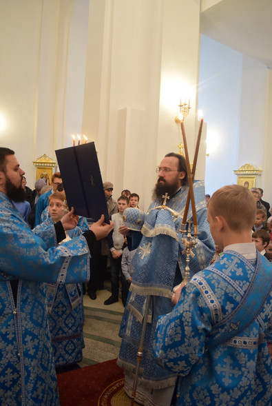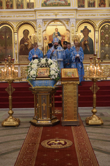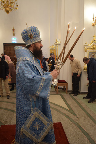 На кануне Архипастырь в сослужении духовенства совершил Всенощное бдение.