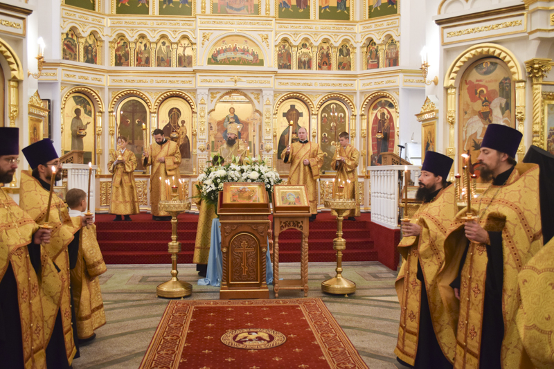 На утрени после чтения кафизм Архипастырь с духовенством торжественно встретили прибывший в Норильск с горы Афон список иконы Божией Матери «Всецарица», который с этого дня в течении следующей недели будет доступен для поклонения.