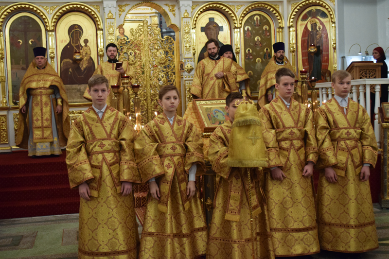 Накануне Архипастырь в сослужении духовенства совершил Всенощное бдение в кафедральном соборе.