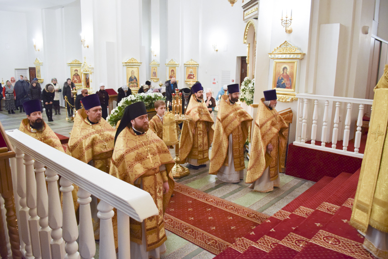 Его Преосвященству сослужили: секретарь Норильской епархии иеромонах Герман (Мельников); благочинный Норильского округа протоиерей Владимир Иванов; руководитель епархиального отдела по взаимодействию с вооруженными силами и правоохранительными структурами протоиерей Димитрий Харцых; соборное духовенство.