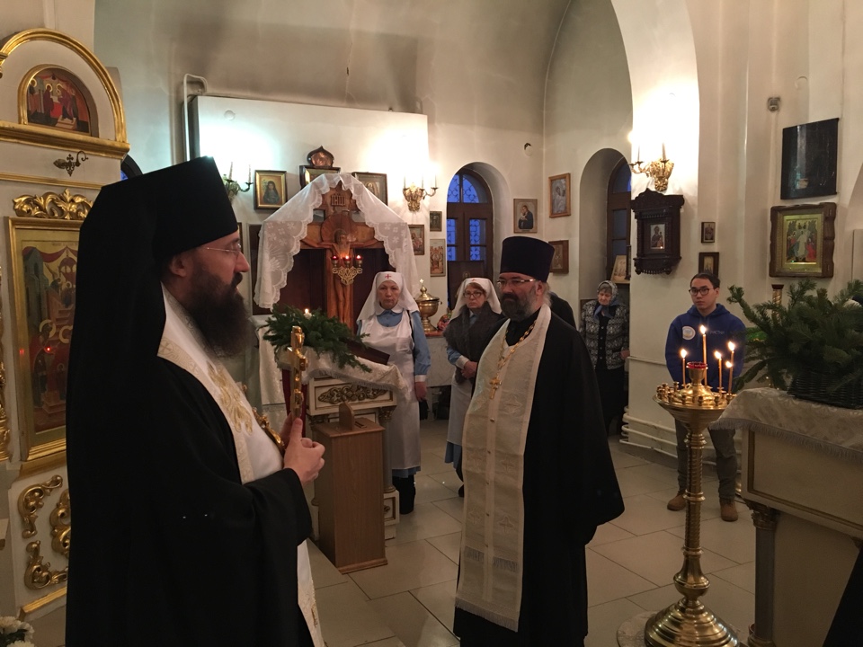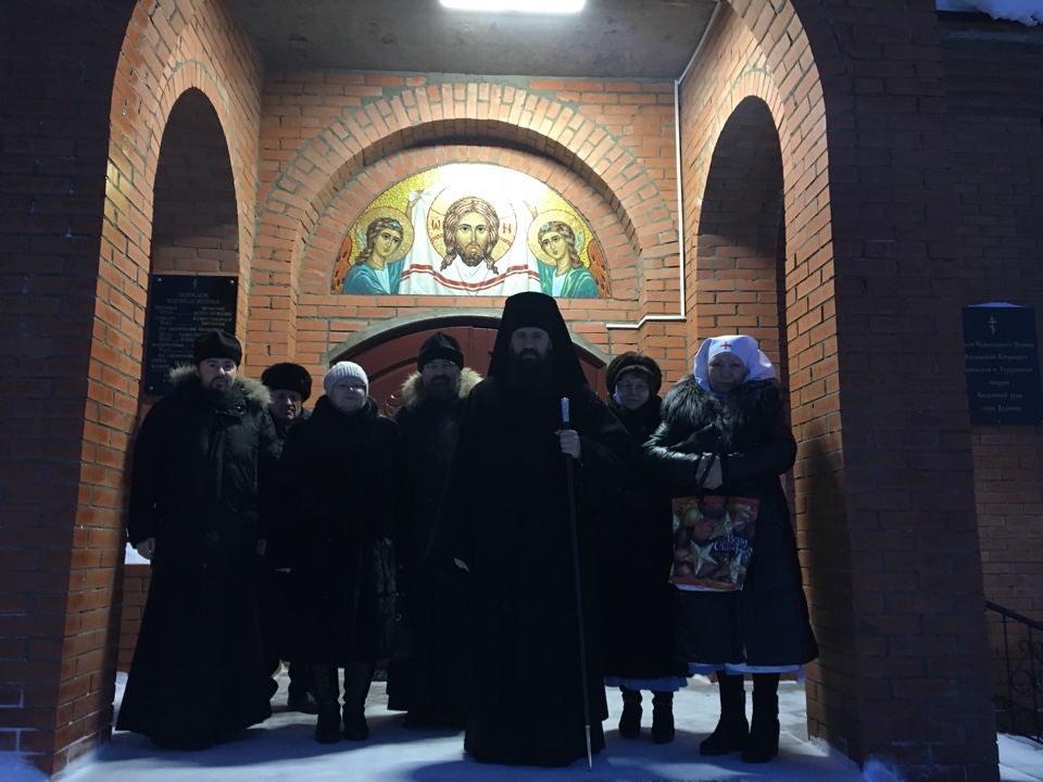 В ходе визита Архипастырь совершил Рождественский молебен в Свято-Введенском храма города Дудинки. Его Преосвященству сослужили благочинный Таймырского округа Норильской епархии, настоятель храма протоиерей Георгий Ицков и штатный священник храма иерей Роман Шагиев. За богослужением молились сестры епархиального сестричества милосердия имени святой преподобномученицы великой княгини Елисаветы. По окончании богослужения Владыка обратился к собравшимся со словами проповеди и поздравил с праздником Рождества Христова.