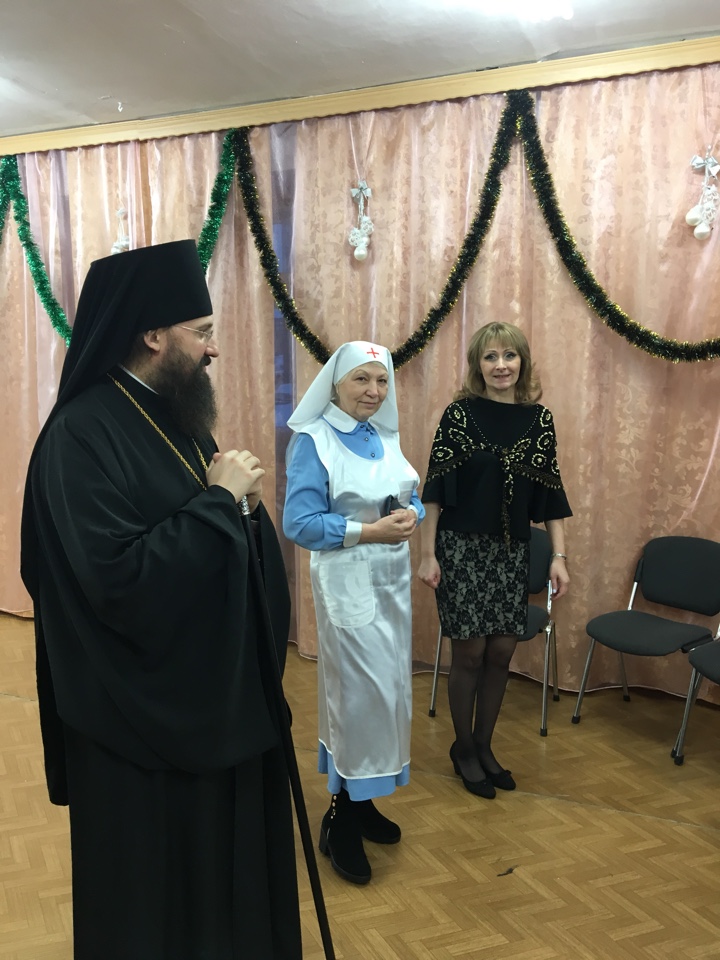 После, в сопровождении духовенства и сестер милосердия, Владыка Агафангел посетил Дудинский детский дом «Ромашка». С 2014 года епископ Агафангел является членом попечительского совета учреждения. После беседы с директором детского дома Юлией Валерьевной Шамрай, Владыка встретился с воспитанниками учреждения и поздравил их с Рождеством Христовым.