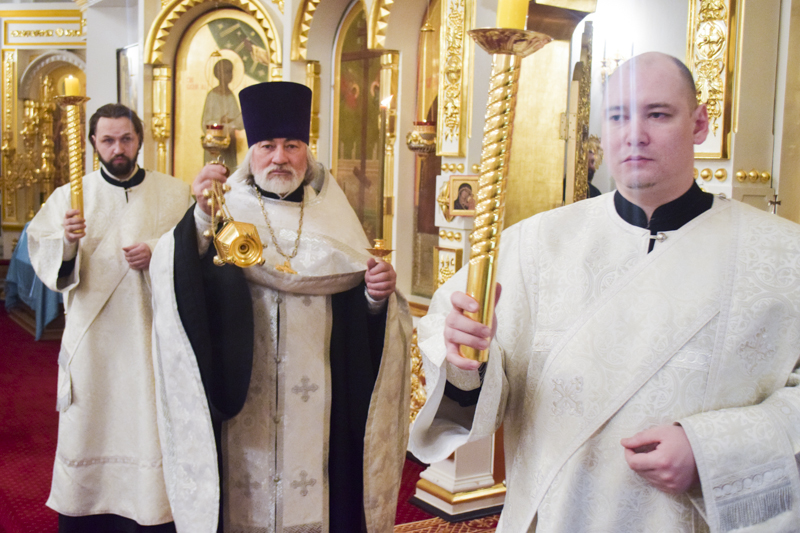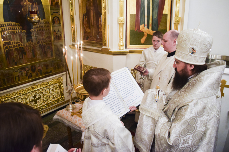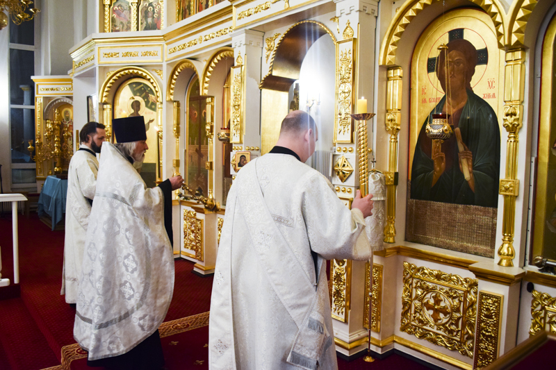 Его Преосвященству сослужили: секретарь Норильской епархии иеромонах Герман (Мельников); благочинный Норильского округа протоиерей Владимир Иванов; клирики кафедрального собора.