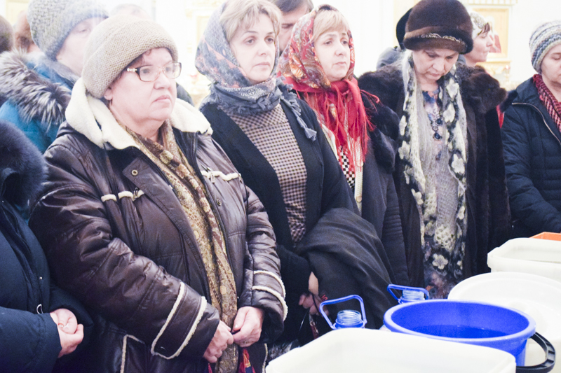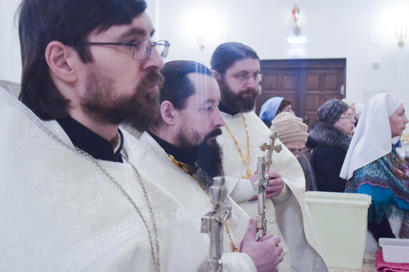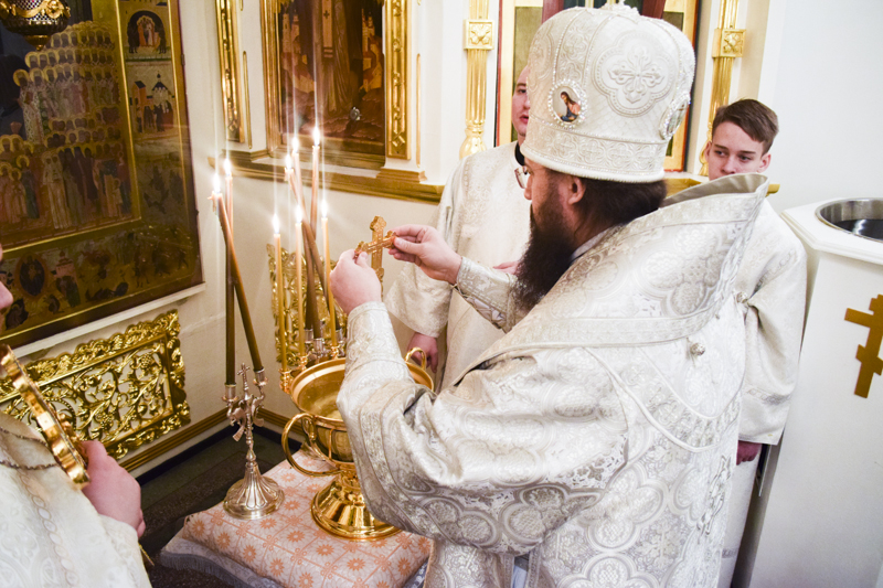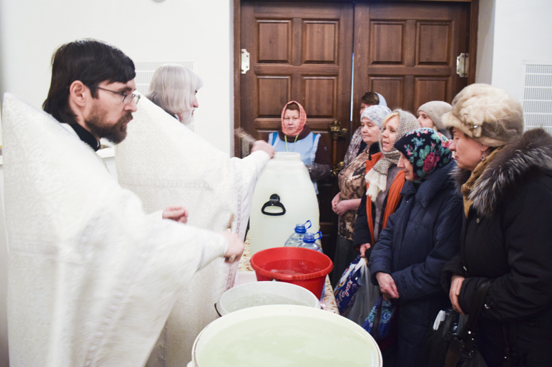 По окончании Литургии Василия Великого епископ Агафангел в сослужении духовенства совершил Великое освящение воды и окропил прихожан святой водой.