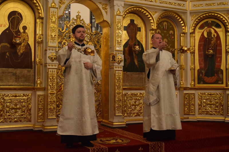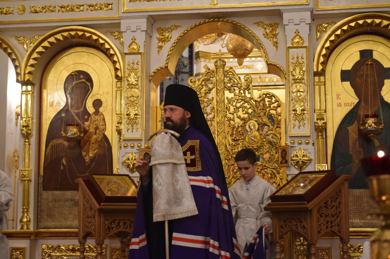 За богослужением возносились сугубые молитвы о мире на Украине.