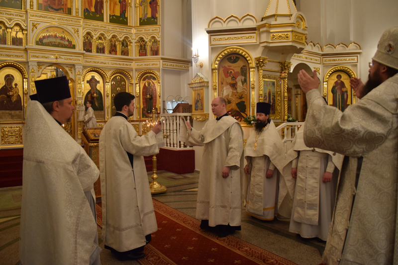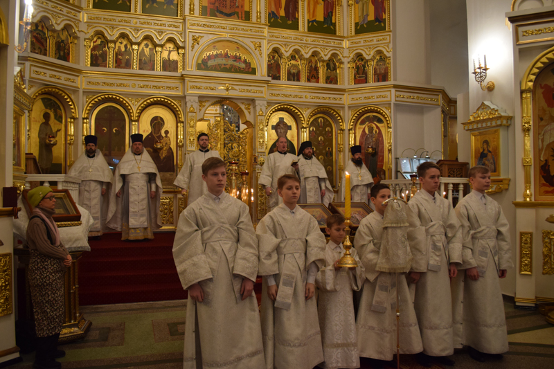 Его Преосвященству сослужили: секретарь Норильской епархии иеромонах Герман (Мельников); председатель епархиального отдела по взаимодействию с вооруженными силами и правоохранительными структурами протоиерей Димитрий Харцых; соборное духовенство.