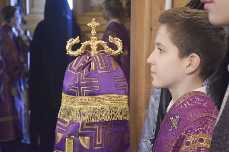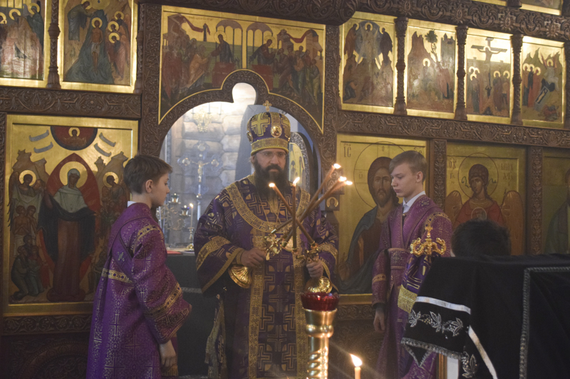 9 марта 2018 года, в пятницу третьей седмицы Великого поста, первое и второе обретение главы Иоанна Предтечи, Преосвященнейший Агафангел епископ Норильский и Туруханский возглавил служение Литургии Преждеосвященных Даров в Свято-Троицком храме района Талнах города Норильска.