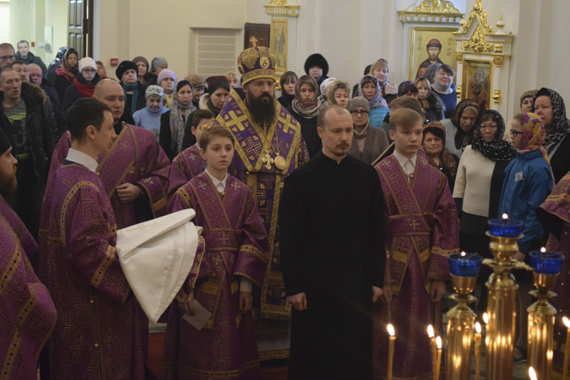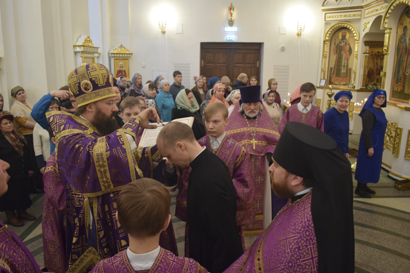 Его Преосвященству сослужили: секретарь Норильской епархии иеромонах Герман (Мельников); благочинный Норильского округа протоиерей Владимир Иванов; штатные клирики прихода.
