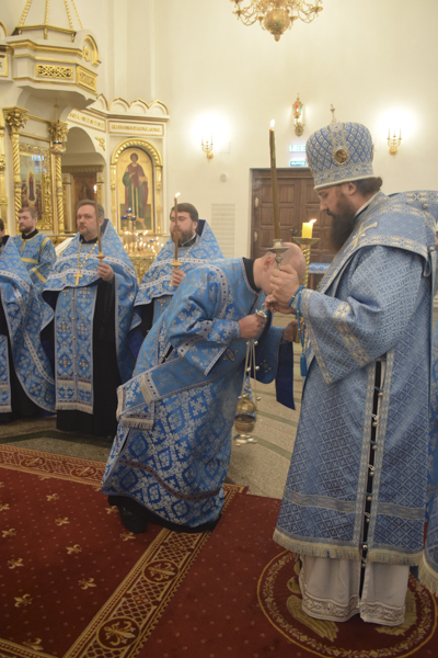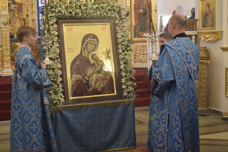 23 марта 2018 года, накануне субботы 5-й седмицы Великого поста – праздник Похвалы Божией Матери (Субботы Акафиста), Преосвященнейший Агафангел, епископ Норильский и Туруханский совершил утреню с чтением Акафиста Пресвятой Богородице в кафедральном соборе в честь иконы Божией Матери «Всех скорбящих Радость» города Норильска. По благословению Владыки, в начале утрени, из алтаря была изнесена икона Божией Матери "Страшное Предстательство" Икона Пресвятой Богородицы "Страшное Предстательство" была написана для Норильской епархии на Святой Горе Афон в скиту святой Анны и доставлена в Норильск в декабре 2016 года. Образ, как почитаемая святыня, хранится в алтаре кафедрального собора.