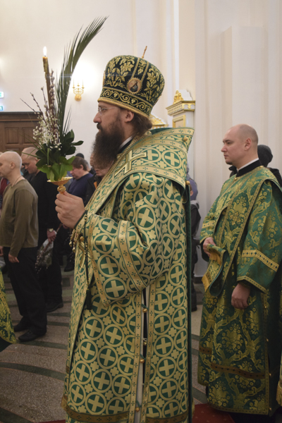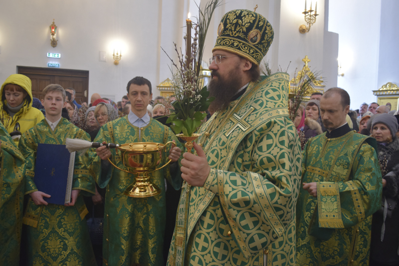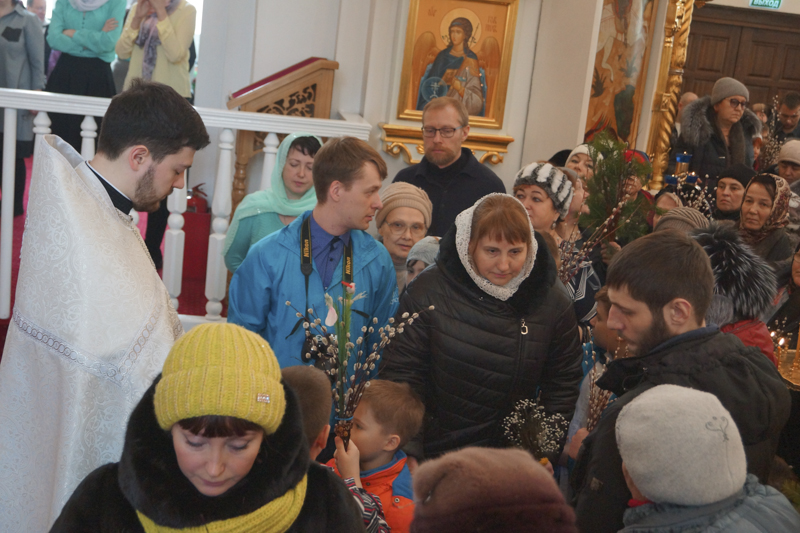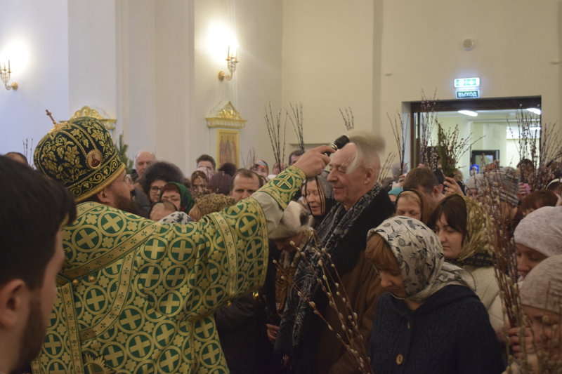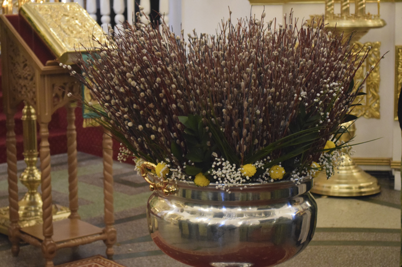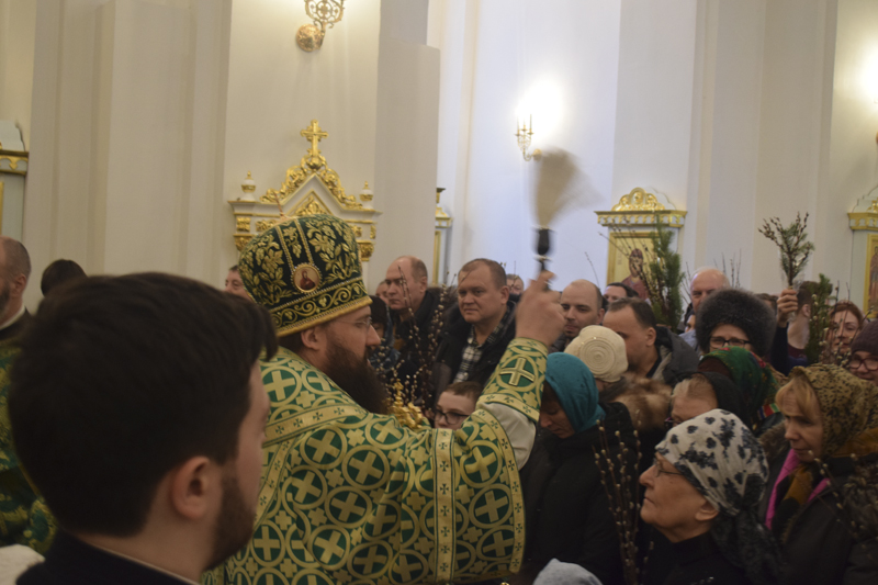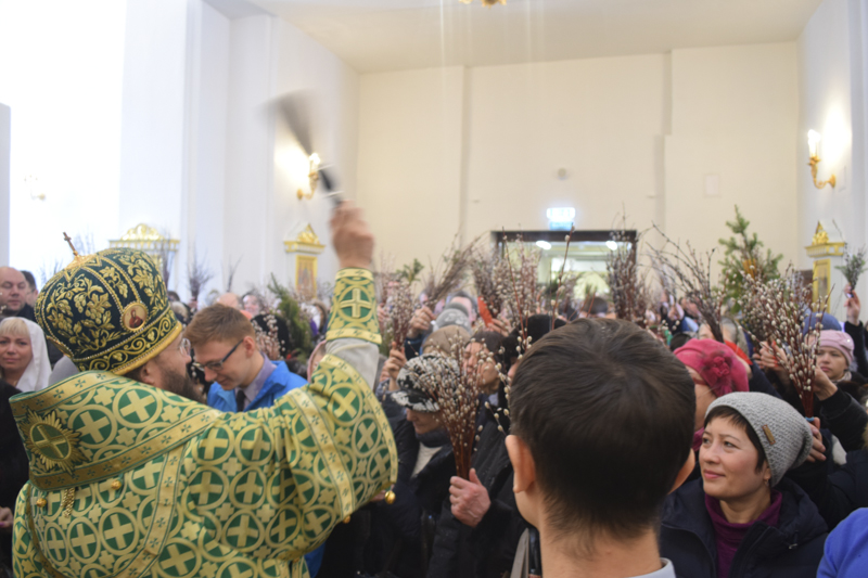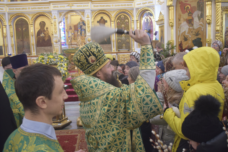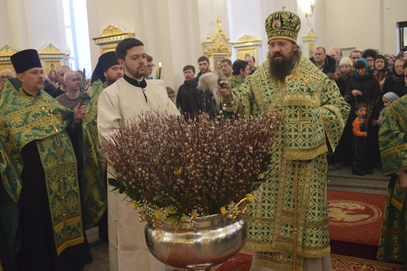 По окончании богослужения Преосвященнейший Владыка совершил славление и освящение верб, после чего обратился к верующим со словами проповеди.