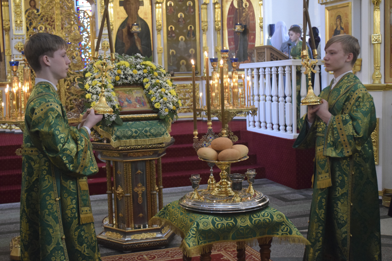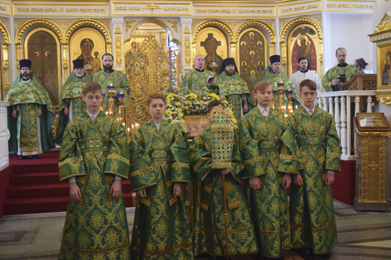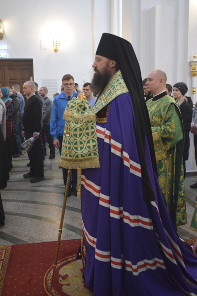 Его Преосвященству сослужили: секретарь Норильской епархии иеромонах Герман (Мельников); благочинный Норильского округа протоиерей Владимир Иванов; председатель отдела по взаимодействию с ВС РФ протоиерей Димитрий Харцыз; штатный клир собора.
