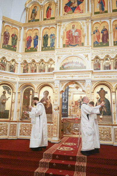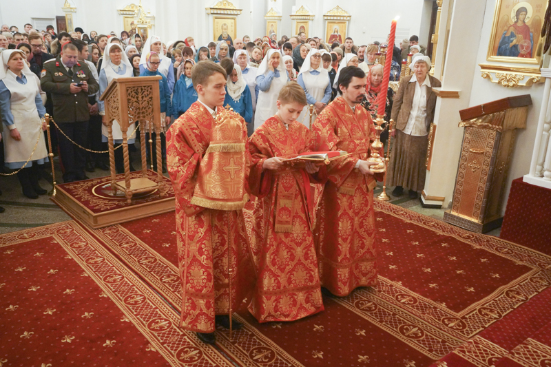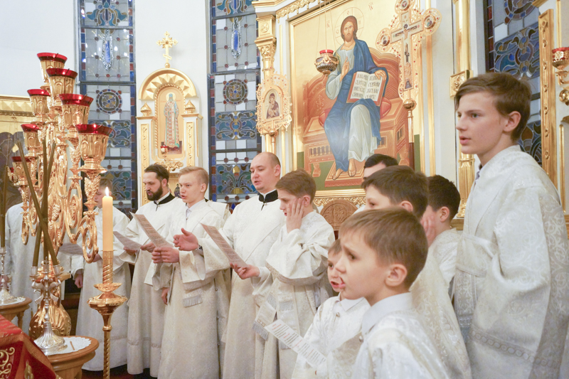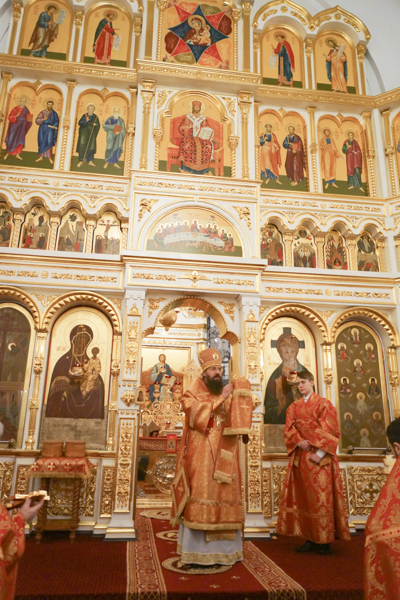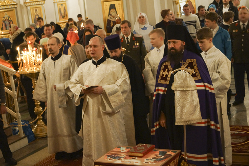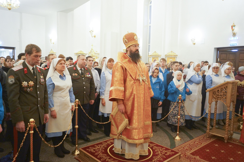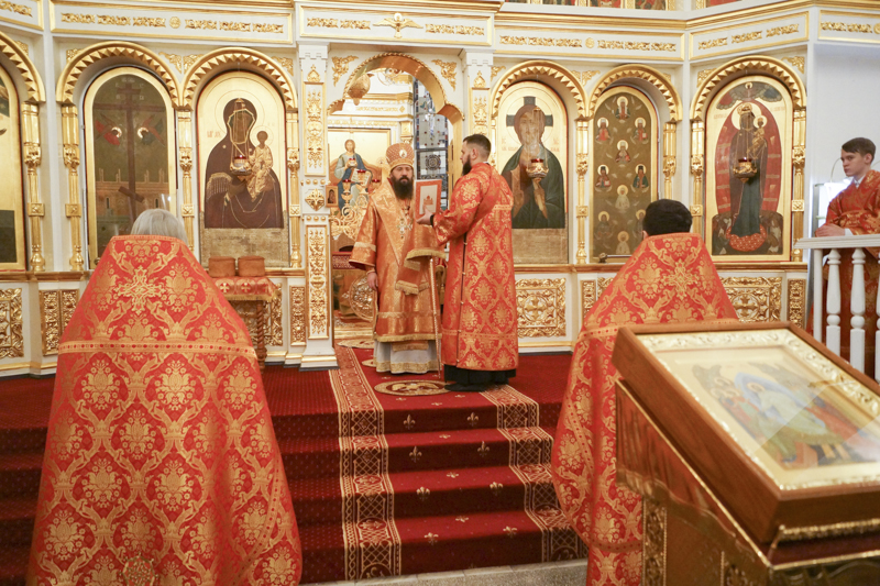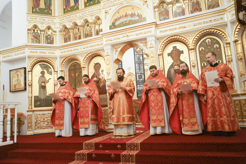 Его Преосвященству сослужили: секретарь Норильской епархии иеромонах Герман (Мельников); благочинный Норильского округа протоиерей Владимир Иванов; председатель епархиального медицинского отдела иерей Алексий Пирогов; руководитель епархиального отдела по вопросам экологии иерей Георгий Михайлов; штатное духовенство собора.
