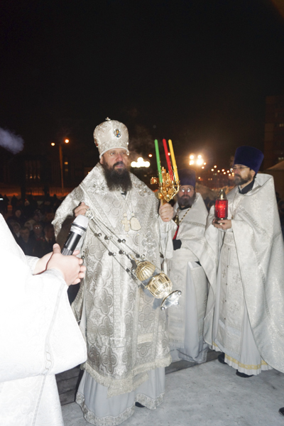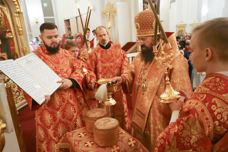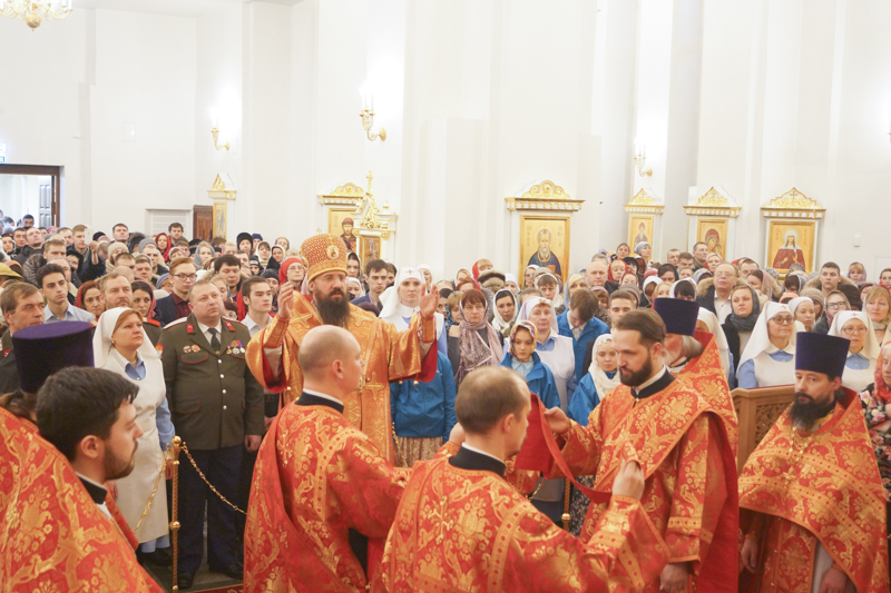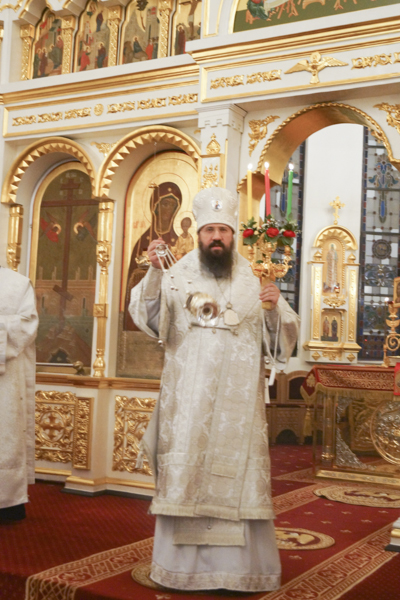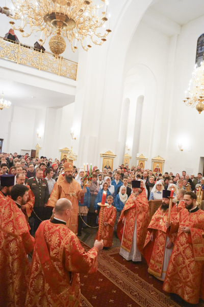 После заамвонной молитвы епископ Агафангел освятил артос, а по окончании богослужения огласил Пасхальное послание Патриарха Московского и всея Руси Кирилла.