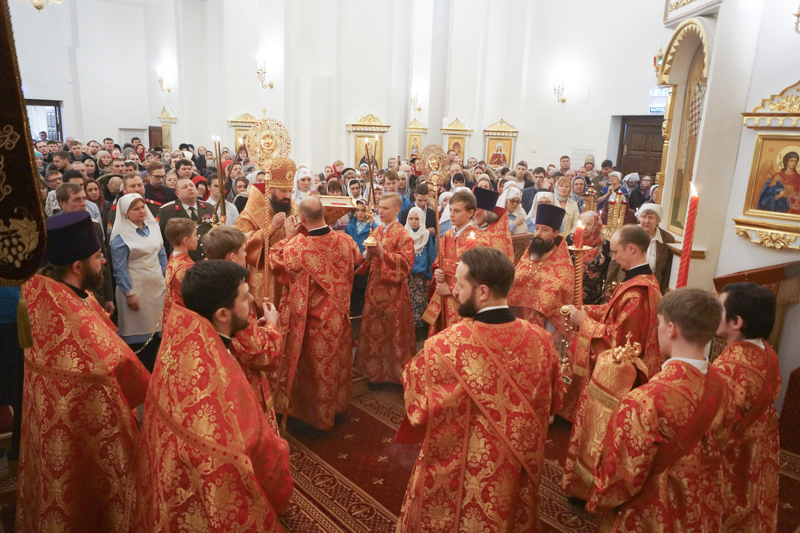 В ночь с 7 на 8 апреля 2018 года Преосвященнейший епископ Агафангел совершил Пасхальные богослужения – полунощницу, крестный ход, Пасхальную заутреню и Божественную литургию святителя Иоанна Златоуста в кафедральном соборе города Норильска в честь иконы Божией Матери «Всех скорбящих Радость».