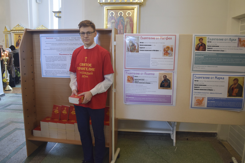 Епархиальным молодежным добровольческим движением была организована акция «Евангелие в каждый дом» на которой всем верующим были предложены Святые Евангелия.