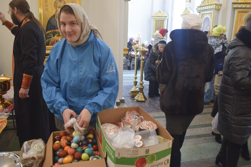 Праздник открылся концертом на соборной площади кафедрального собора. Праздничные песнопения и творческие номера были представлены людям, шедшим на освящение пасхальной снеди и создавали теплую праздничную атмосферу.