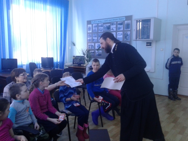 В этот же день в храм святого мученика Василия Мангазейского пришли школьники, изучающие в рамках предмета ОРКСЭ основы православной культуры и основы мировых религиозных культур.
