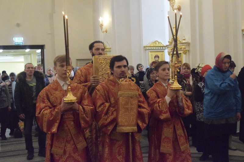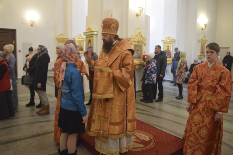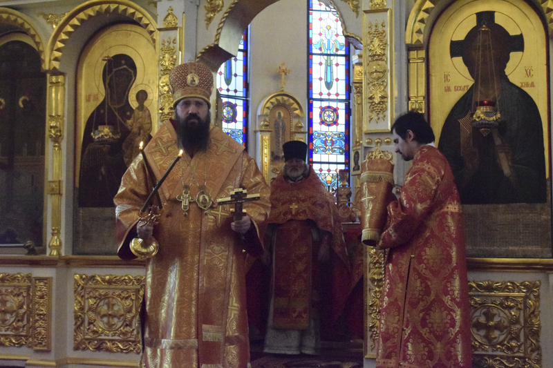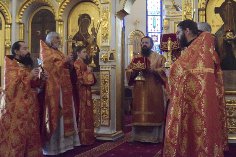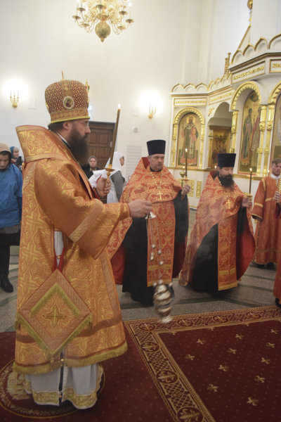 Его Преосвященству сослужили: клирик Красноярской епархии протоиерей Сергий Шачин; благочинный Норильского округа протоиерей Владимир Иванов; соборное духовенство.