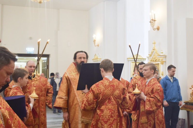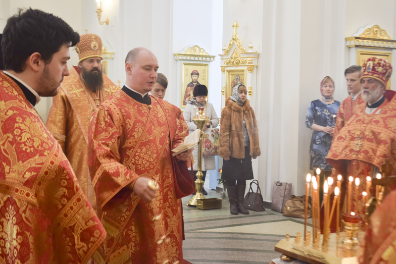 Его Преосвященству сослужили: секретарь Норильской епархии иеромонах Герман (Мельников); клирик Красноярской епархии, первый настоятель кафедрального собора протоиерей Сергий Шачин; председатель епархиального отдела по взаимодействию с вооруженными силами и правоохранительными органами протоиерей Димитрий Харцыз; ключарь кафедрального собора иерей Алексий Пирогов; руководитель епархиального отдела по делам молодежи Норильской епархии иерей Димитрий Прохоров.