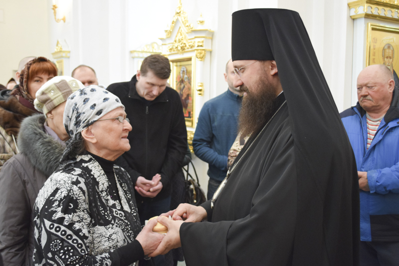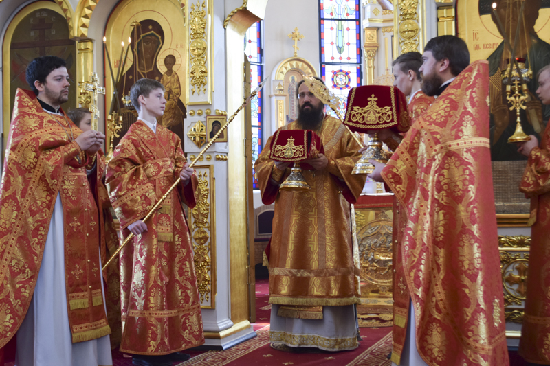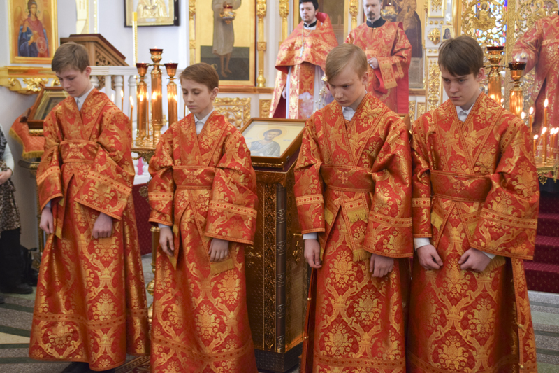 Его Преосвященству сослужили: секретарь Норильской епархии иеромонах Герман (Мельников); руководитель отдела по делам молодежи Норильской епархии иерей Димитрий Прохоров; соборное духовенство.