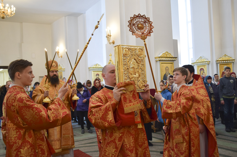 13 мая 2018 года, в Неделю 6-ю по Пасхе, о слепом, в день памяти святого апостола Иакова Зеведеева, Преосвященнейший Агафангел, епископ Норильский и Туруханский, совершил Божественную литургию в кафедральном соборе в честь иконы Божией Матери «Всех скорбящих Радость» города Норильска.