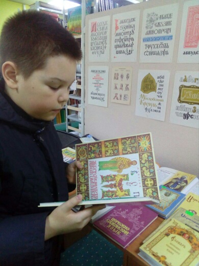 На выставке представлены книги о святых братьях-просветителях словенских, книги об азбуке, учебники по церковно-славянскому языку, словари, заметки в журналах, повествующие о важности изучения родного языка. Здесь же представлены книжные новинки библиотеки.