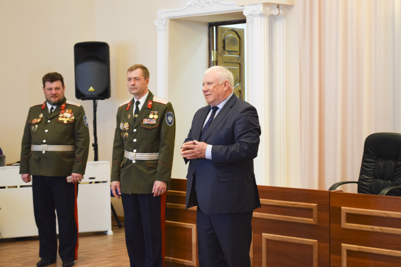 Атаман ЕКВ НГКО, казачий полковник Ю.А. Кононченко, в актовом зале епархиального управления, торжественно наградил казаков очередными воинскими званиями и вручил благодарственные письма.