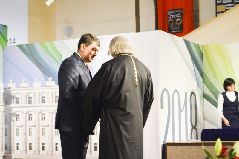 В ознаменование 65-летия Норильска, глава города Ахметчин Ринат Вячеславович вручил знаки отличия благочинному Норильского округа протоиерею Владимиру Иванову и руководителю епархиального Сестричества «Милосердие» Ласточкиной Татьяне Владимировне.