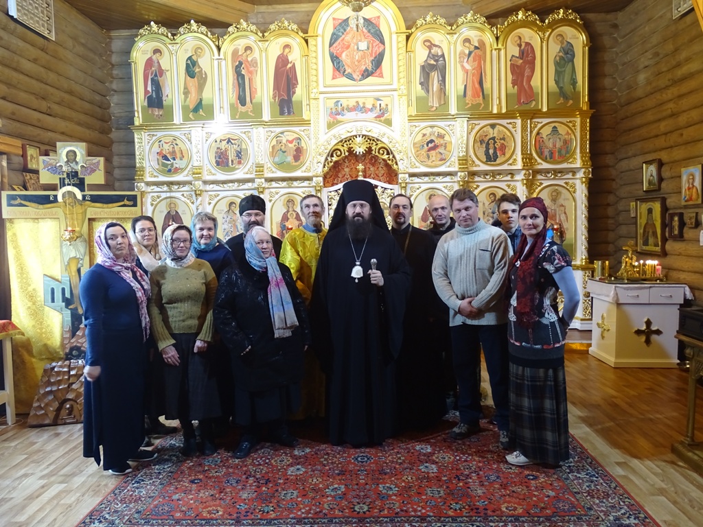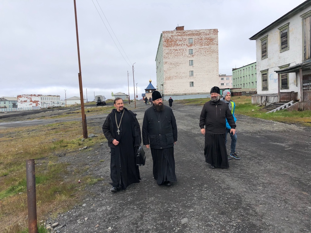 Его Преосвященству сослужили: секретарь Норильской епархии иеромонах Герман (Мельников); благочинный Таймырского округа Норильской епархии, настоятель храма протоиерей Георгий Ицков; штатный священник храма святителя Николая поселка Диксон иерей Роман Трофимов.