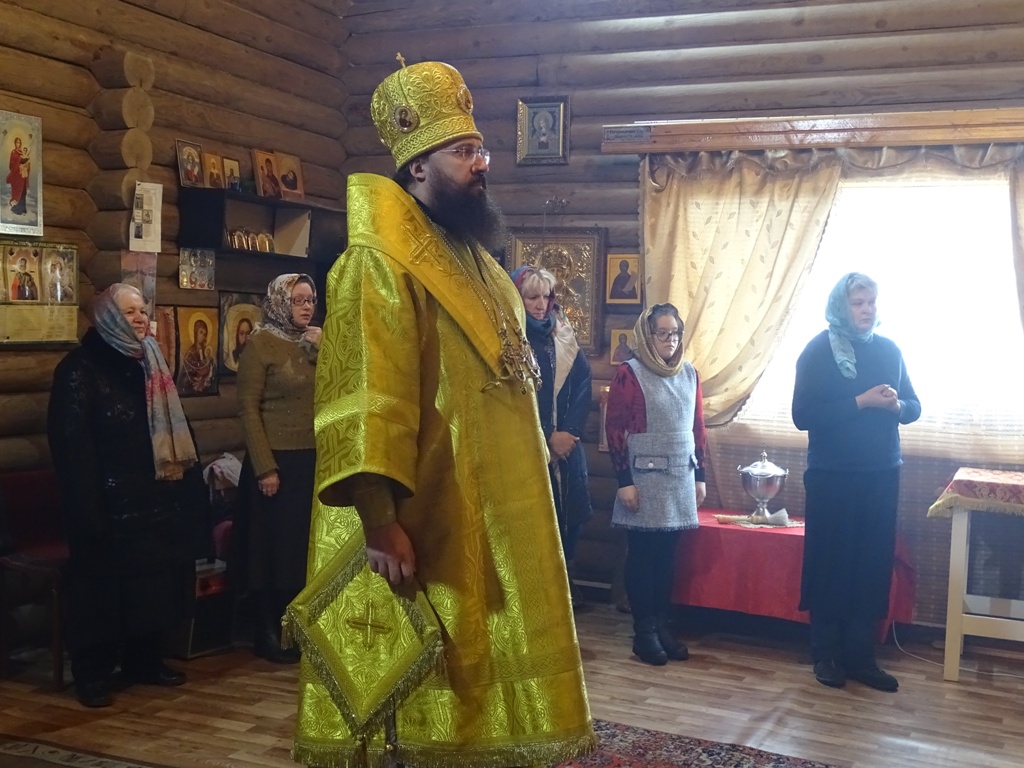 По окончании богослужения Владыка обратился к верующим со словами проповеди и подарил всем иконки Божией Матери «Всех скорбящих Радость».