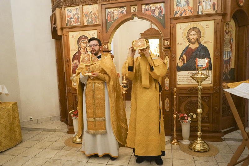 По благословению управляющего Норильской епархии Преосвященнейшего Агафангела епископа Норильского и Туруханского, богослужение возглавил руководитель епархиального отдела по делам молодежи Норильской епархии иерей Димитрий Прохоров.