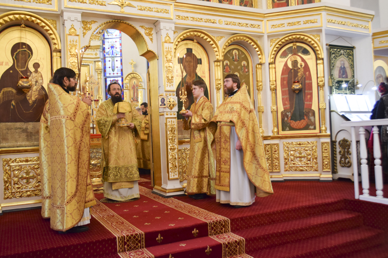 Его Преосвященству сослужили секретарь Норильской епархии иеромонах Герман (Мельников), штатный клир собора.