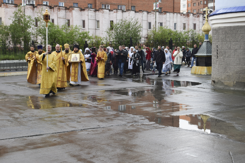 По окончании Божественной литургии был совершен крестный ход вокруг собора и молебен в честь праздника святого равноапостольного князя Владимира и в память крещения Руси.