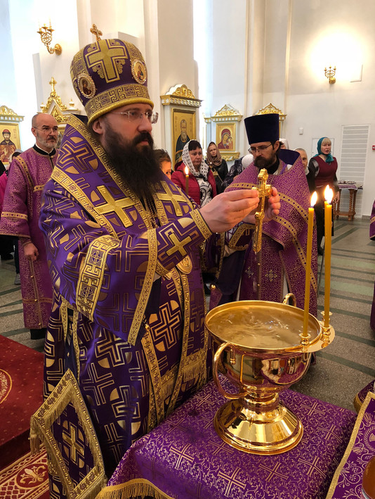 После окончания Богослужения Архипастырь совершил водосвятный молебен и освятил мед.