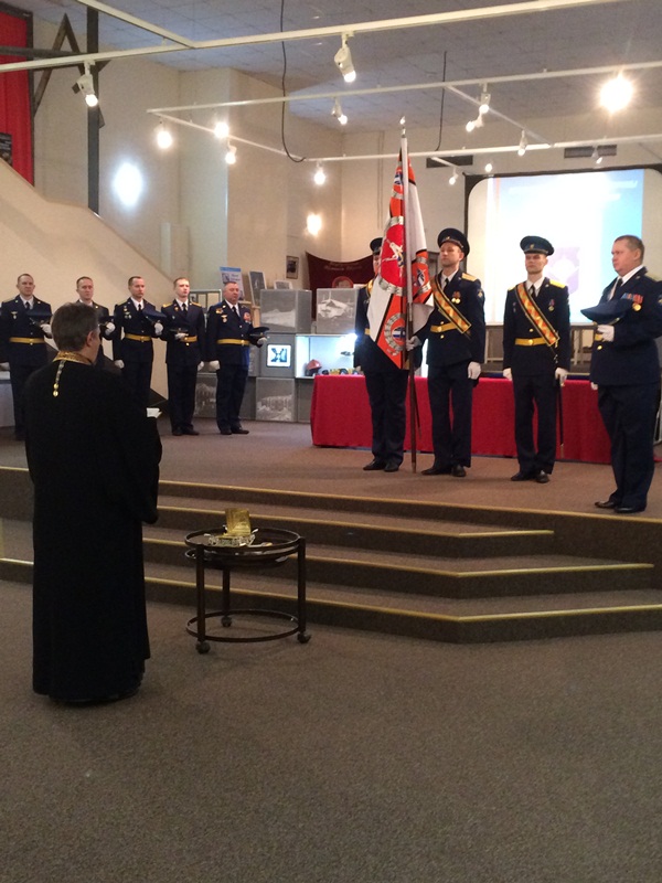По благословению правящего Архиерея Норильской епархии Преосвященнейшего Агафангела, чин освящения воинского знамени-хоругви совершил председатель епархиального отдела по взаимодействию с вооруженными силами протоиерей Димитрий Харцыз.