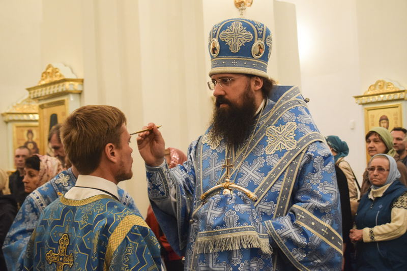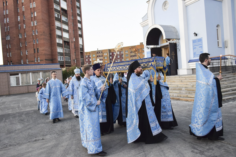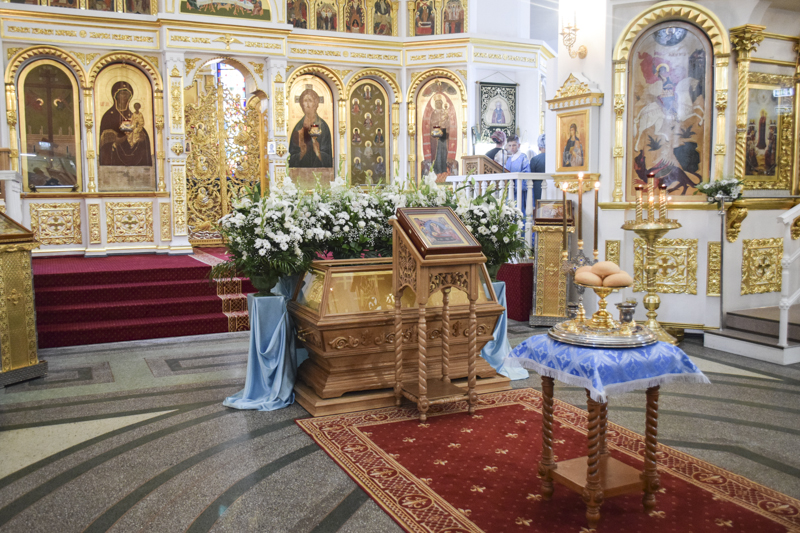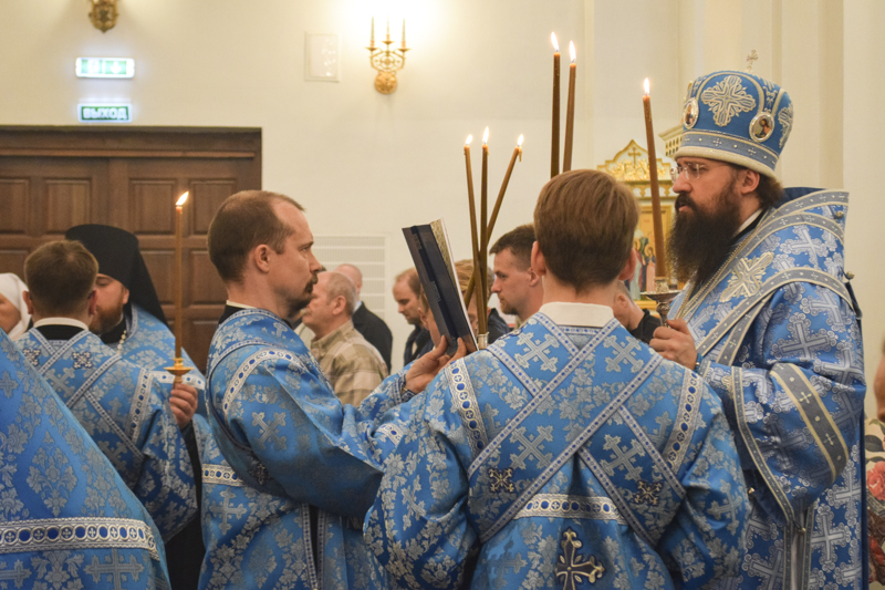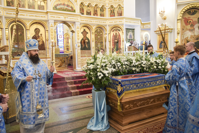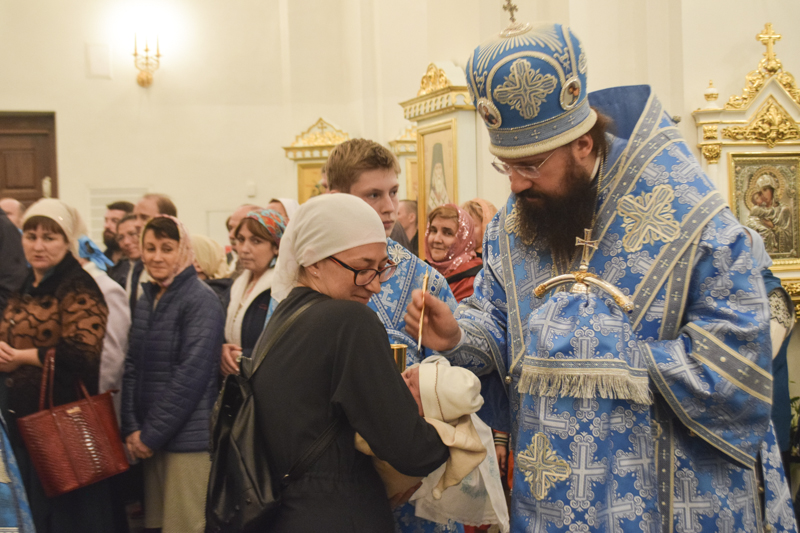 Вечером 27 августа 2018 года, в канун праздника Успения Пресвятой Богородицы, в кафедральном соборе в честь иконы Божией Матери «Всех скорбящих Радость» Преосвященнейший епископ Агафангел совершил праздничное Всенощное бдение и Чин погребения Божией Матери.
