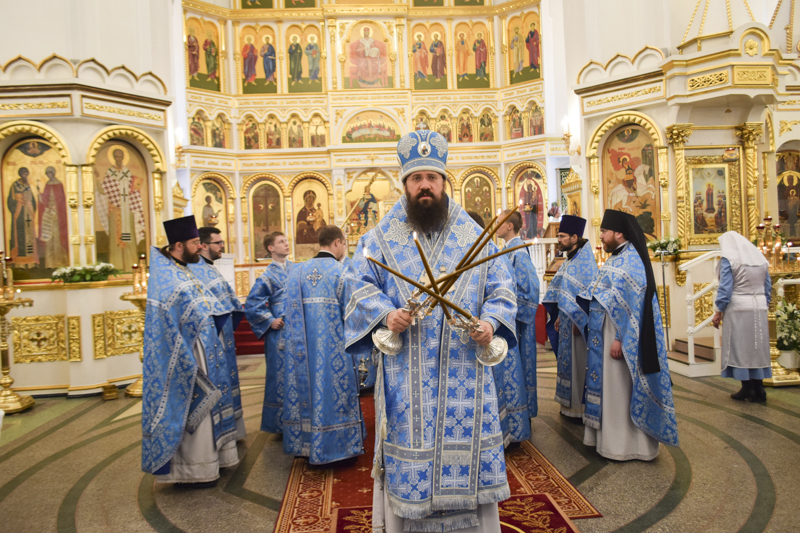 Его Преосвященству сослужили: секретарь Норильской епархии иеромонах Герман (Мельников); ключарь кафедрального собора иерей Алексий Пирогов; руководитель отдела Норильской епархии по церковной благотворительности и социальному служению иерей Сергий Андреев; руководитель епархиального отдела по делам молодежи иерей Димитрий Прохоров; штатный клир собора.