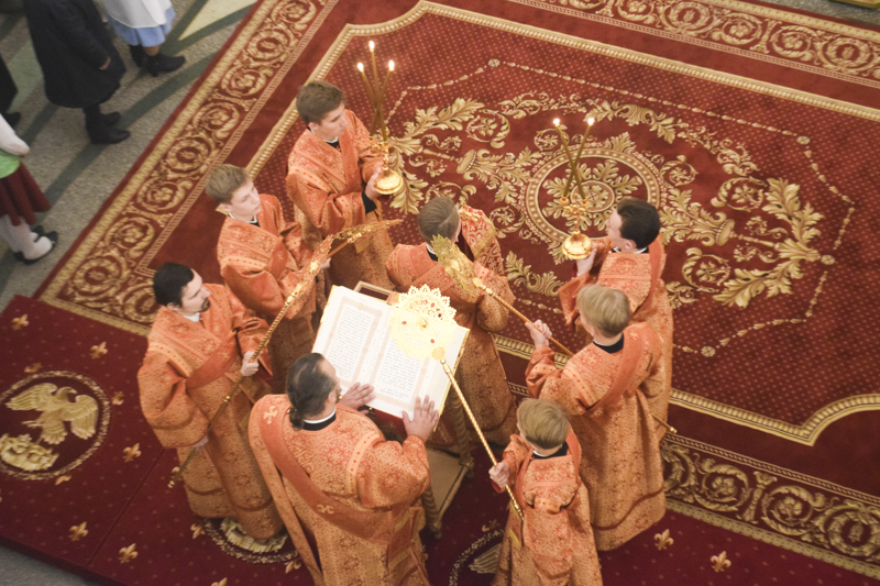 Богослужебные песнопения исполнили третий академический хор Московской Духовной Академии. под управлением иеромонаха Нестора (Волкова).