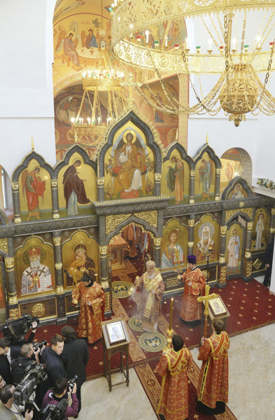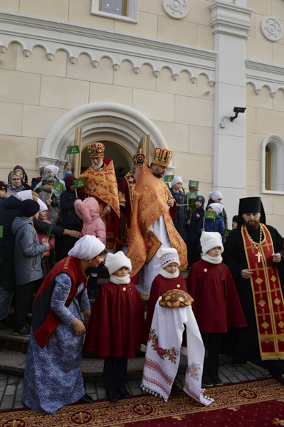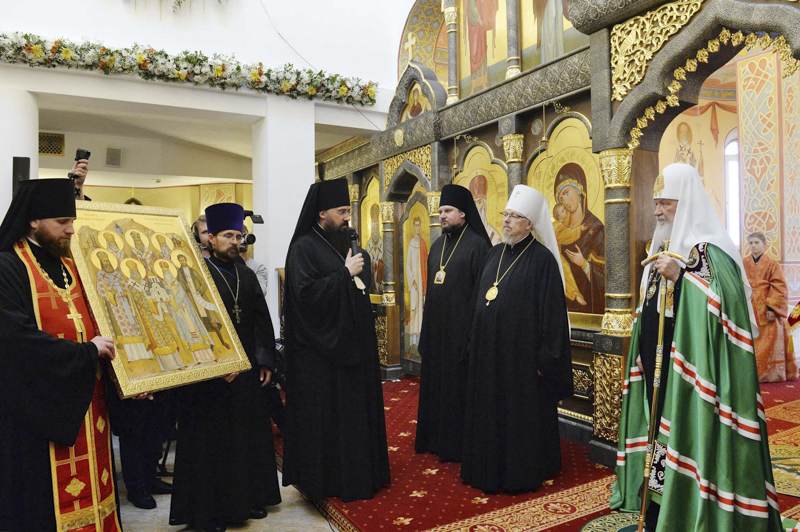 В дар новоосвященному храму Предстоятель Русской Церкви передал икону Божией Матери «Скоропослушница», для храмов епархии — напрестольные Евангелия.
